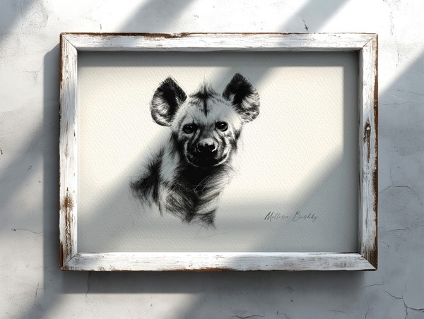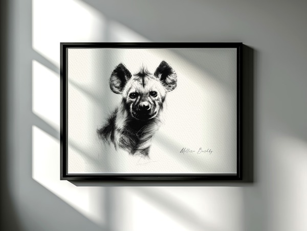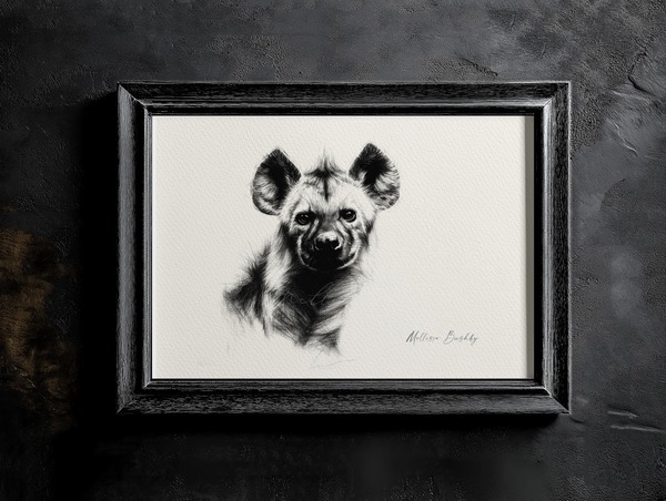 Rendered in ink and graphite, this hyena emerges from shadow with quiet intensity. A creature so often misunderstood, yet vital to the wild. A symbol of resilience, intelligence, and the uneasy beauty of nature’s balance, he speaks to the hidden lives that thrive beyond our fear and folklore.